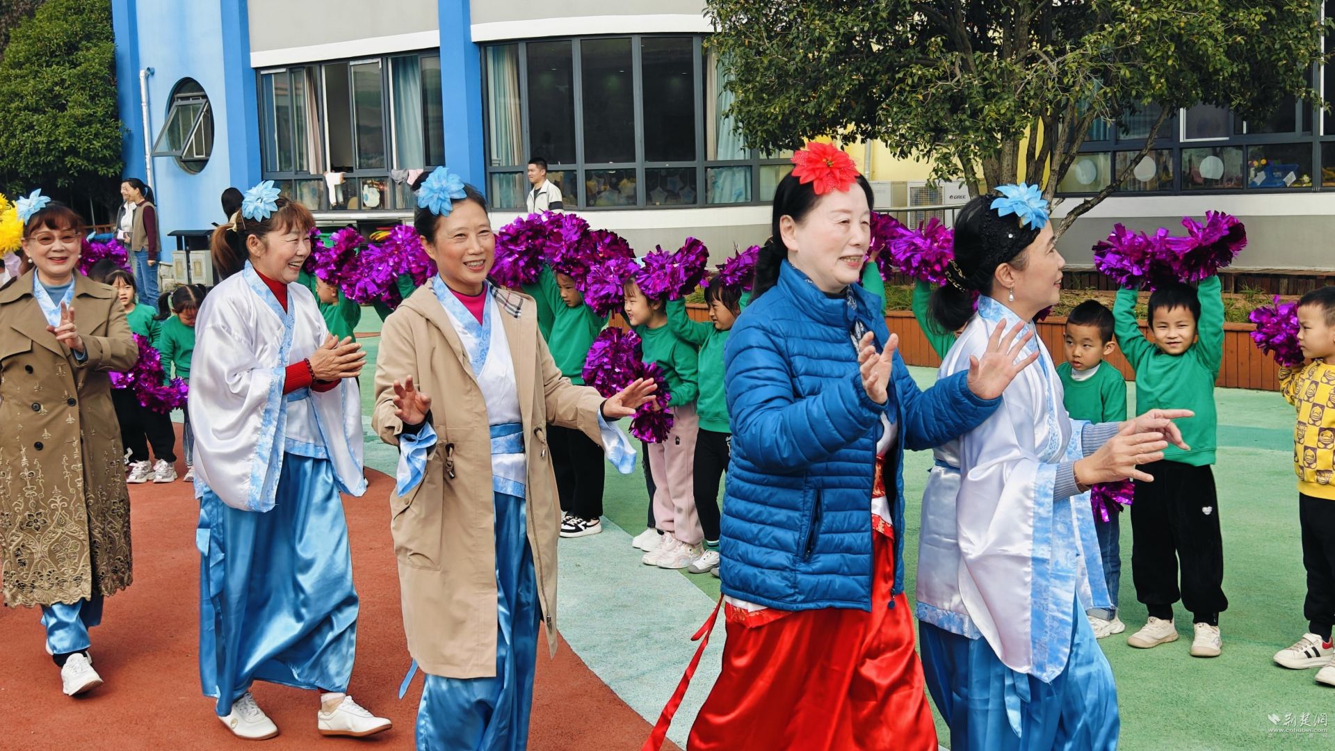 舞台表演忽略了气氛。三年级班的孩子们拿着扇子,随着“万里山河”的节奏翩翩起舞;二年级班的“篮球宝贝”运球、奔跑,展现了他们的热情;而中产子女则表演了手势舞蹈《孝道永远》,细腻地传递着孝心。全力北社区佟拉花奶奶和她的团队表演了舞蹈《黄梅悠游》,张小兵爷爷演唱了《红星照耀着我去奋斗》,赢得了阵阵掌声。幼儿园老师演绎的《相思歌谣》为整场演出画上了圆满的句号。