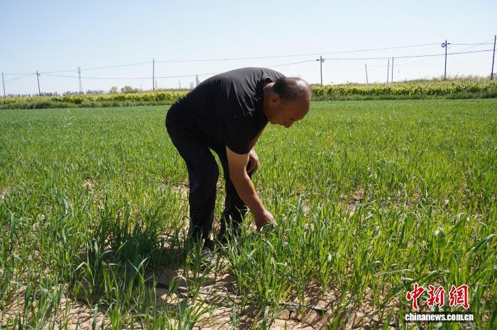 图为徐忠厚检查燕麦草生长情况。侯旭嘉图片