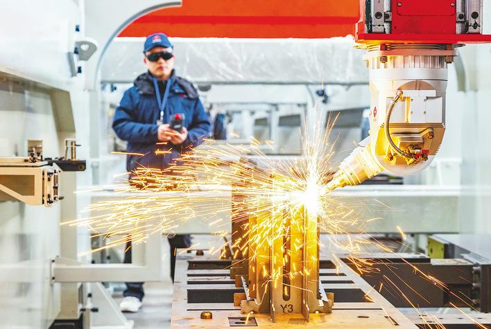 在华工科技智能制造产业园,技术人员铺设了激光设备。 (薛婷图)