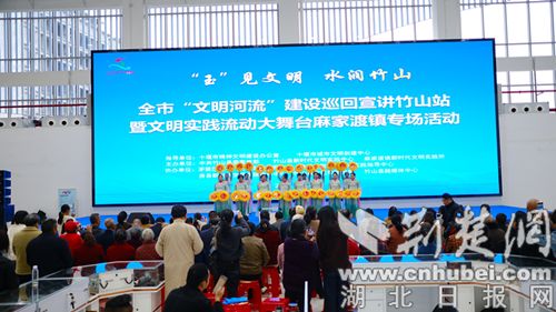 荆楚网(湖北日报网)讯(通讯员 张亚欣)10月23日下午,十堰市“文明河”宣传竹山站“玉”见文明文明润竹山”——“我爱竹山·小镇舞台”马家渡镇专场活动在马家渡镇国际珠宝交易中心拉开帷幕。活动开始前,来自各省的参会人员、 各市县乡首先前往马家渡镇罗家坡村,参观竹山县十星文明展示馆和马家渡镇新时代文明站综合体,感受当地文明成果;随后的重头活动包括理论讲座、文艺表演、模范表彰、志愿者服务等形式,不仅为大家送上了一场“精神盛宴” 不仅为群众提供了“贴心服务”,成为竹山县通过本土化经营激发本土经营活力的生动例证文明行为。